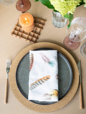 Printed linen napkins with beautiful, nature-inspired motives will please those, who value exciting designs and nature-friendly materials. Washed 100% natural cloth dinner napkins are pleasantly soft and will look captivating on your dinner or party table. Upgrade your table setting!