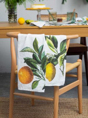 Orange & Lemon White Linen Kitchen Towels (set of 2)