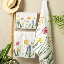 These pretty, decorative Early Flowers linen towels are perfect for guest bathrooms or small powder rooms, as they’re not just useful but also add a touch of sophistication. Keep a few in an easy-to-reach spot for single use (remember to provide a basket for used towels), or hang them up for sharing—don’t worry, linen is naturally antibacterial, so it’s great for hygiene. They can also be used as face cloths—perfect for drying your face after washing or using wet for massages or gentle exfoliation, leaving the skin feeling softer and cleaner.