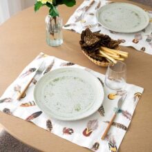 Light and dreamy Feathers placemats will bring warmth and cosiness to your dining table. Soft off-white colour linen and lovely feathers prints in warm tonalities will create a comforting atmosphere for friendly reunions around the table.