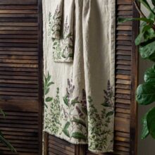 Our linen bath towels Fine Herbs are more than just towels – they’re beautiful, stone washed soft, and will transform your daily bathing into a luxurious hotel spa experience. And why not take them to the beach, summer sauna, or pool? They’re pleasurable on your skin, dry quickly, and when you wrap them around your body, they look like an elegant summer dress.