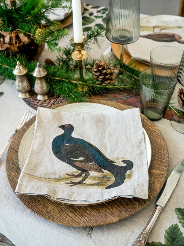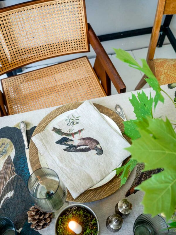 The slightly wrinkled texture of washed linen napkins makes them look stylish and cosy at the same time. You can play around, combine with LINOROOM linen tablecloths of different sizes and colours as birds linen napkins look great on any of our nature-inspired colours.