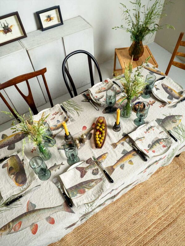 You love fish, fishing, or just hanging out near the lake? Eye-cathing set of linen napkins with a realistic fish design will add a touch of wilderness to any table, be it at a summer party under the tree or a fancy city dining room with a drop of eccentricity. Don’t be shy! Surprise your guests!