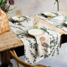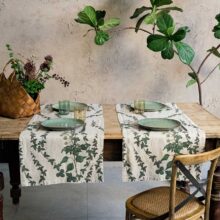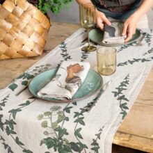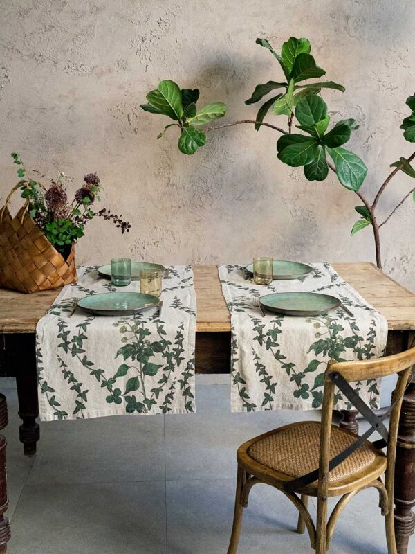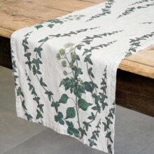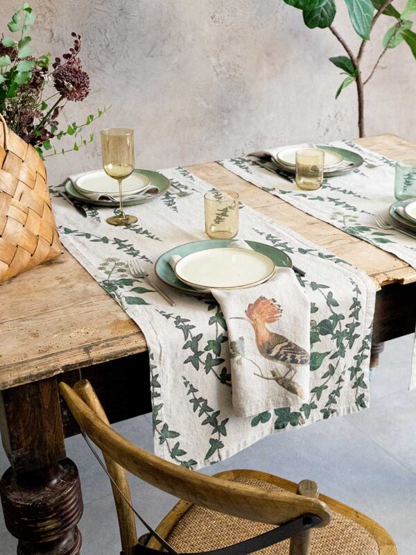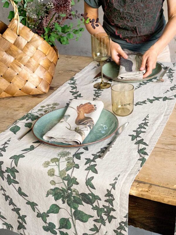Green Ivy table runner will bring natural elegance to any dining room. Nature is the best artist, unsurprisingly calm leafy pattern will be a subtle addition to your table setting. Match with any Linoroom napkins to create a more festive feel!