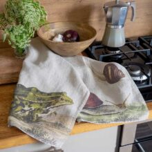 Add a bit of fun and a touch of a curiosity room feel to your kitchen with these countryside-inspired kitchen towels Frog and Snails. Be sure, your children will love them!