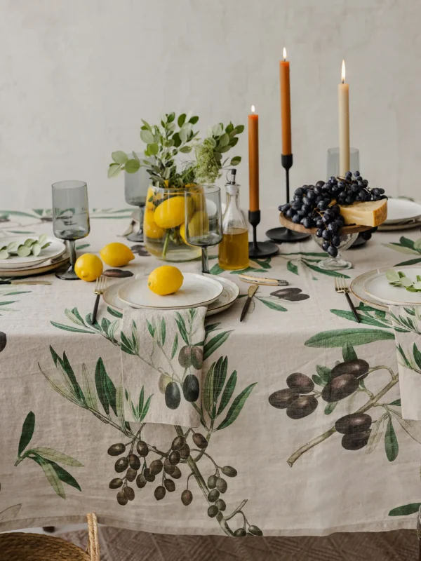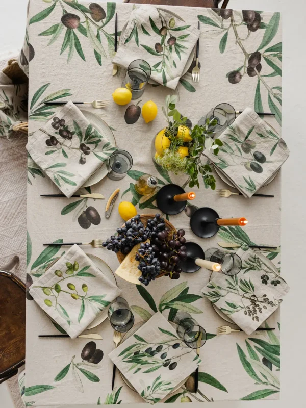 Mediterranean style Olives linen napkins will add a summer feel to your table. They will look equally delightful in a country house garden or an urban dining room, lacking nature and greenery.