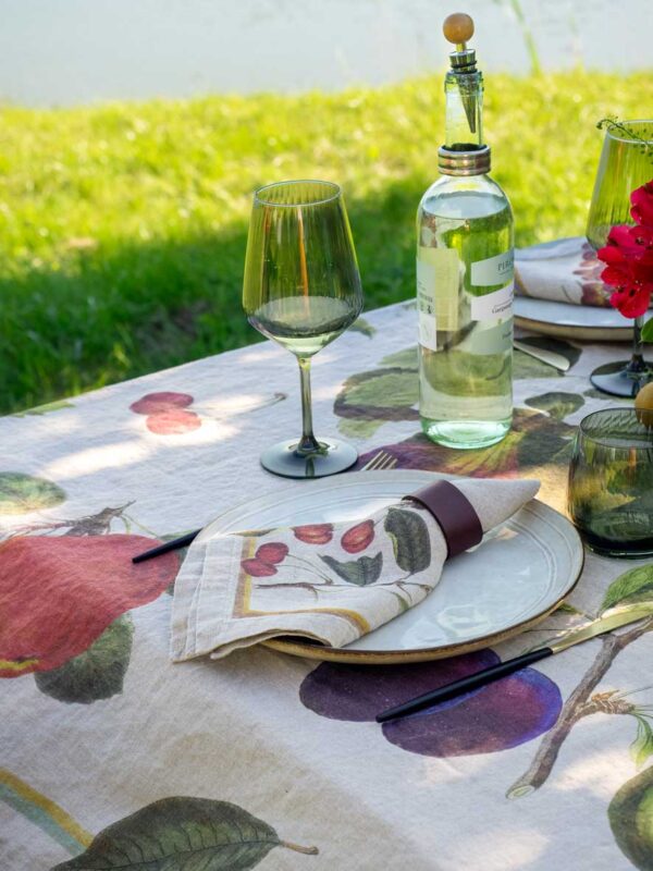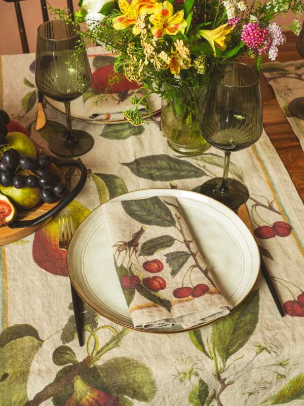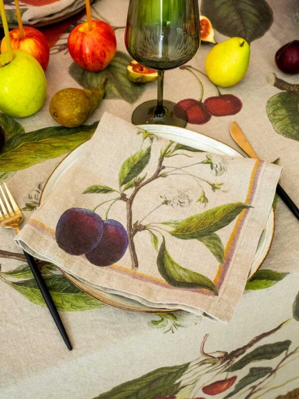 Bold and colourful Orchard Fruits design linen party napkins will fill your dining table with countryside flair and good vibes. The set consists of 6 different fruit napkins: apples, cherries, pears, grapes, figs, plumum, meaning every guest will have their particular motive napkin! The gorgeous napkins will look amazing in countryside dining rooms, picnics, unique garden parties is terraces or orchards!